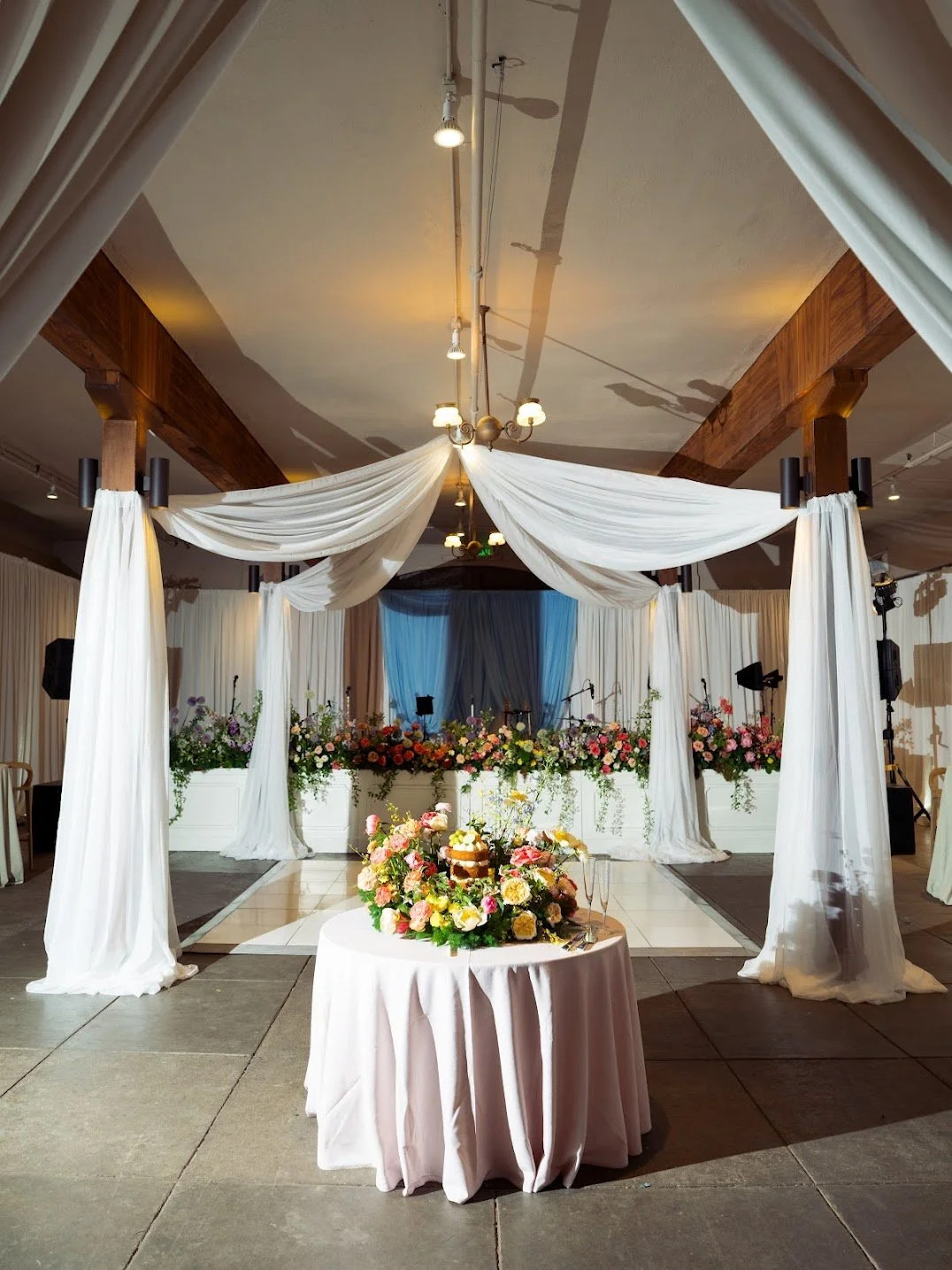Full Ceiling Draping, Gable End Draping & the Theresa Chandelier